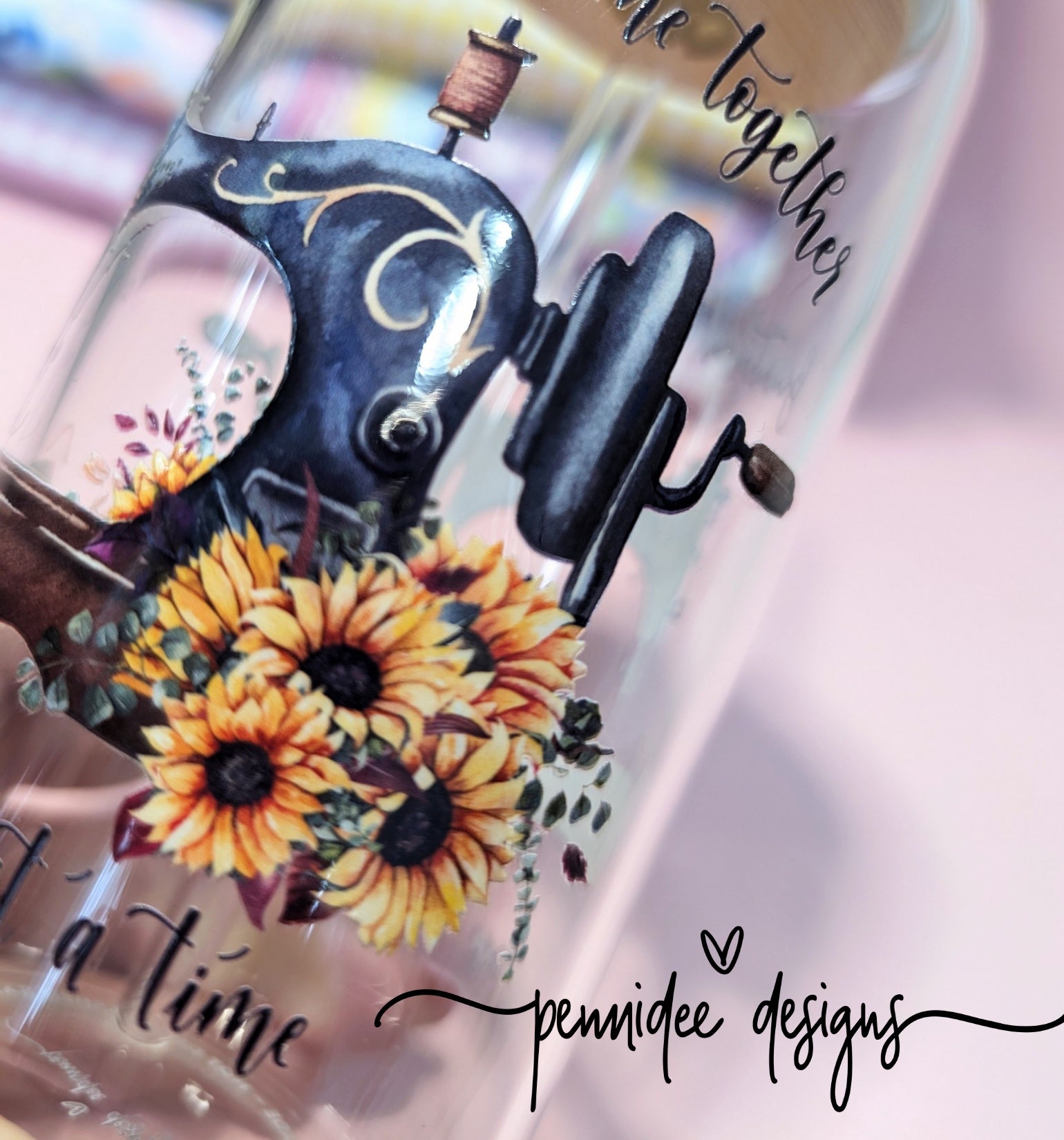 Black Vintage Sewing Machine ~ 475ml (16oz) Libbey Glass Can