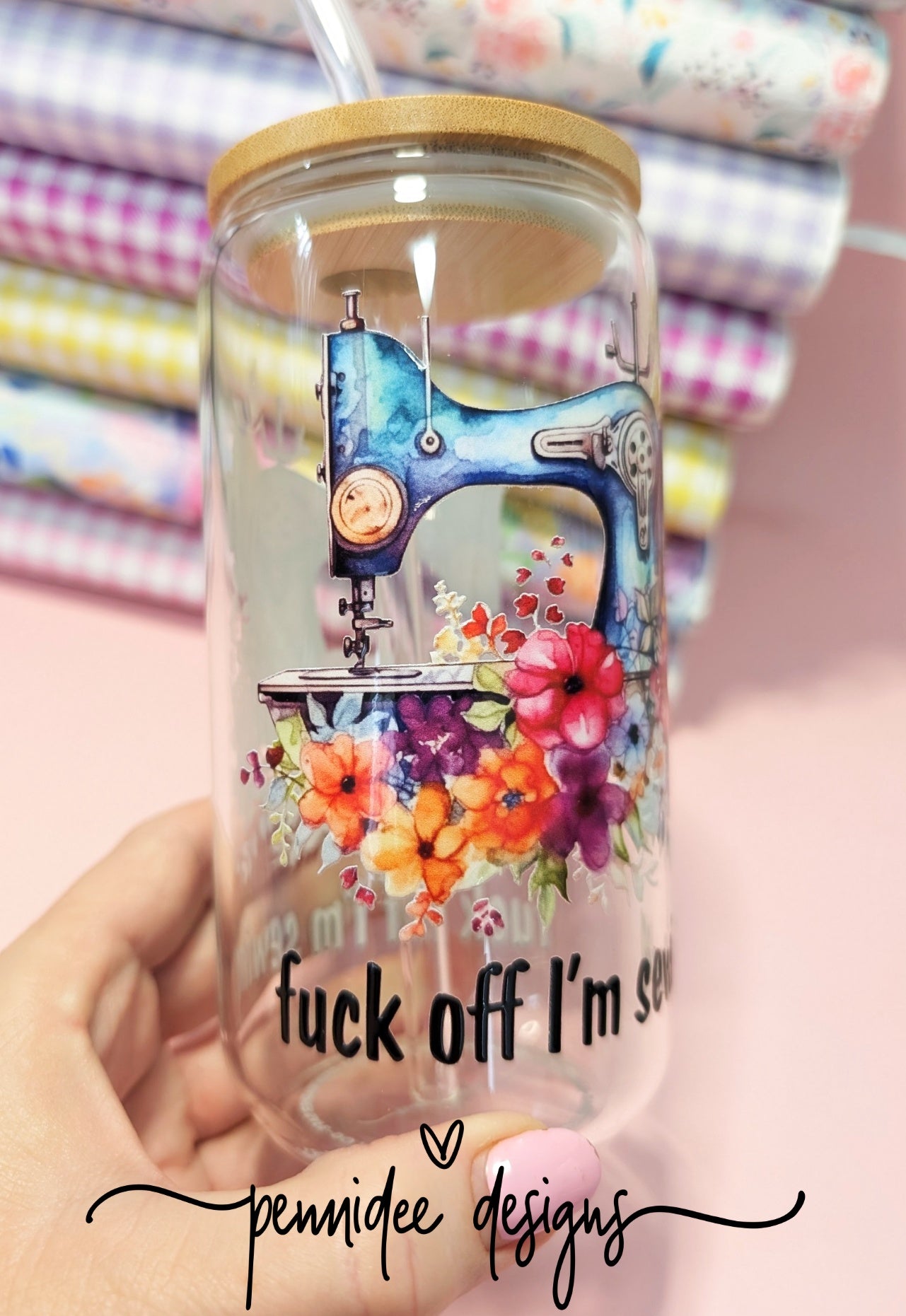 Experience the indulgence of sipping on a delicious and refreshing iced coffee, a flavourful iced tea, or a rejuvenating glass of cold water infused with fresh fruit slices in our Fuck Off I'm Sewing ~ 475ml (16oz) Libbey Glass Can.