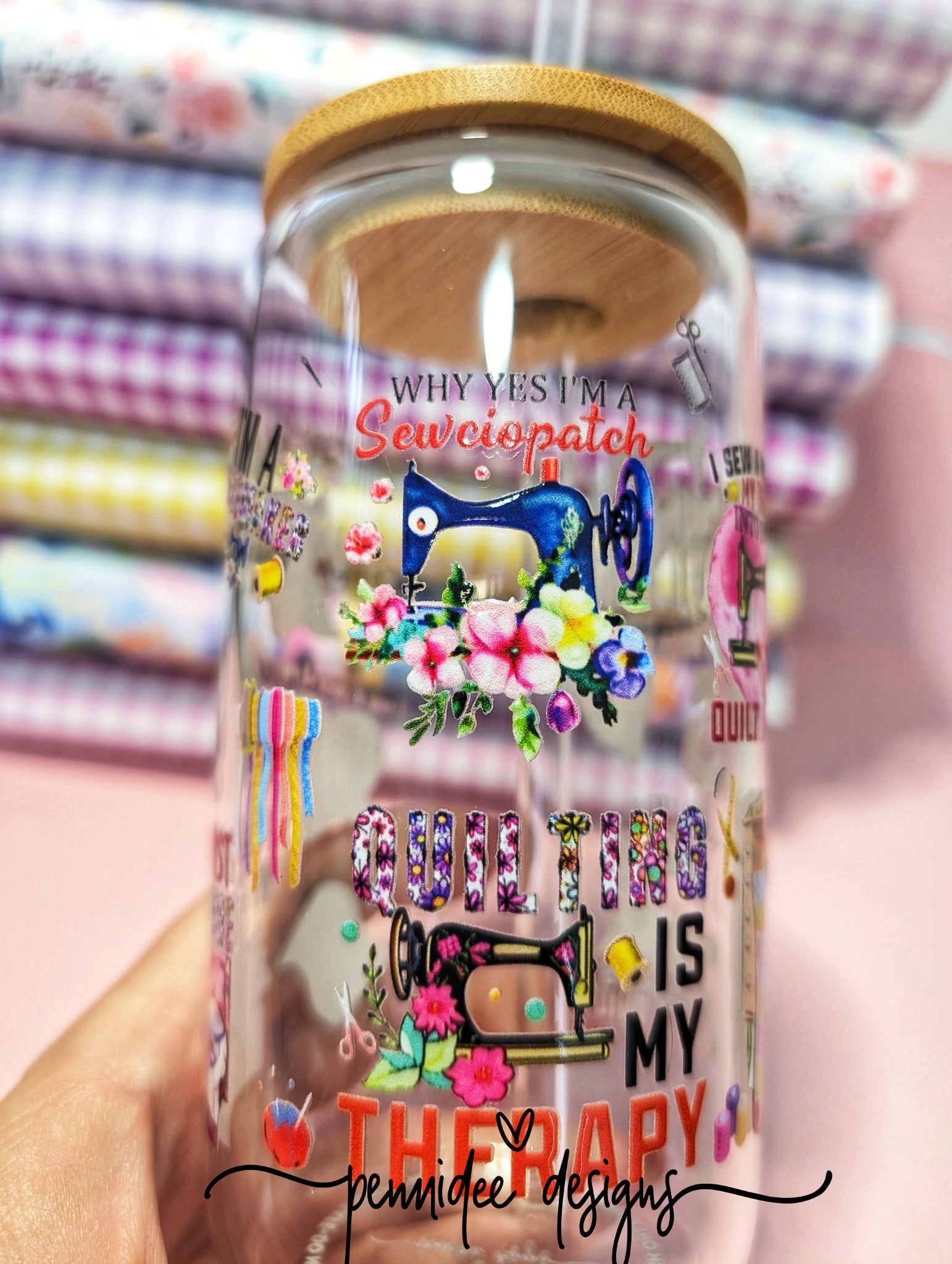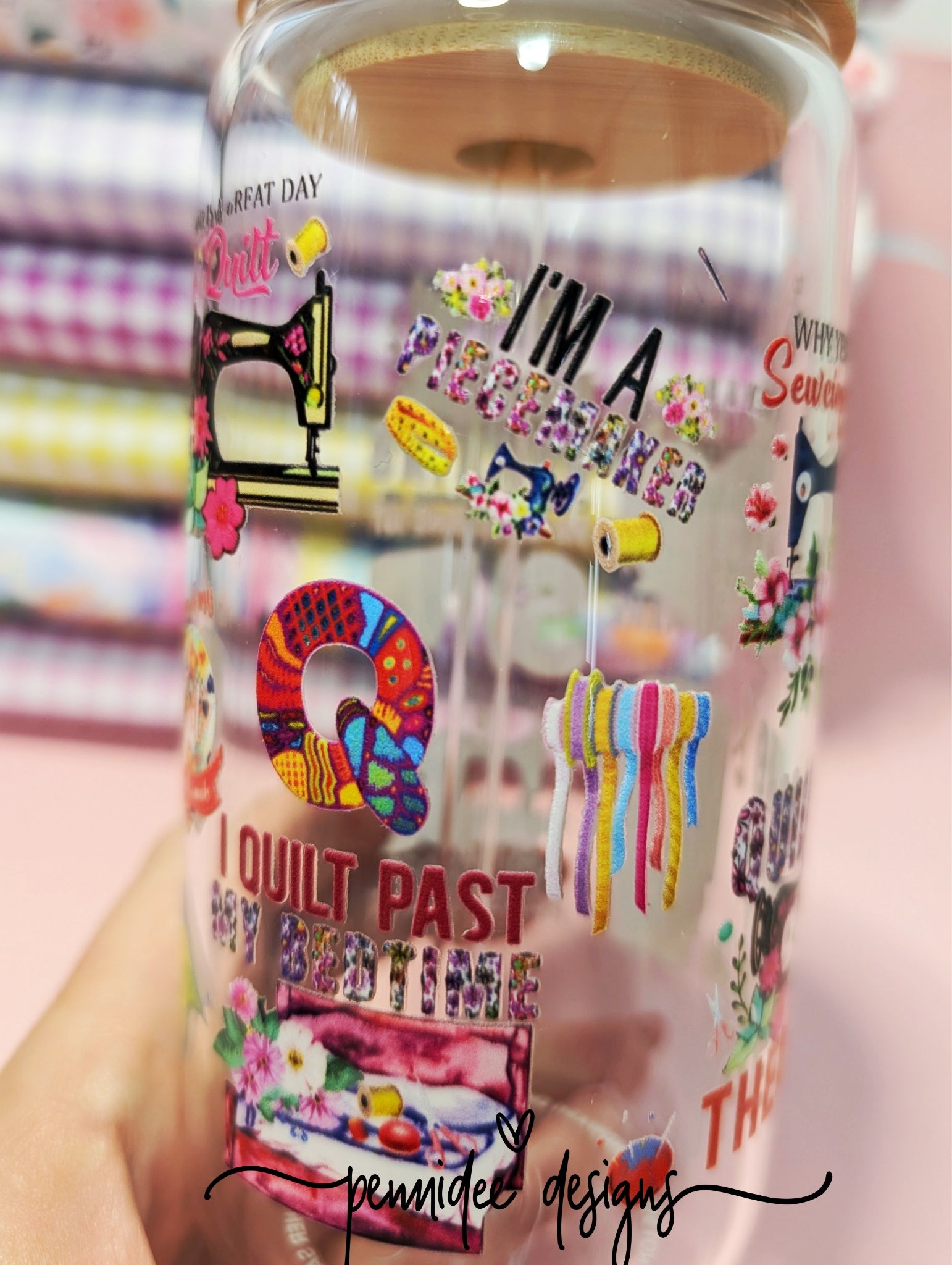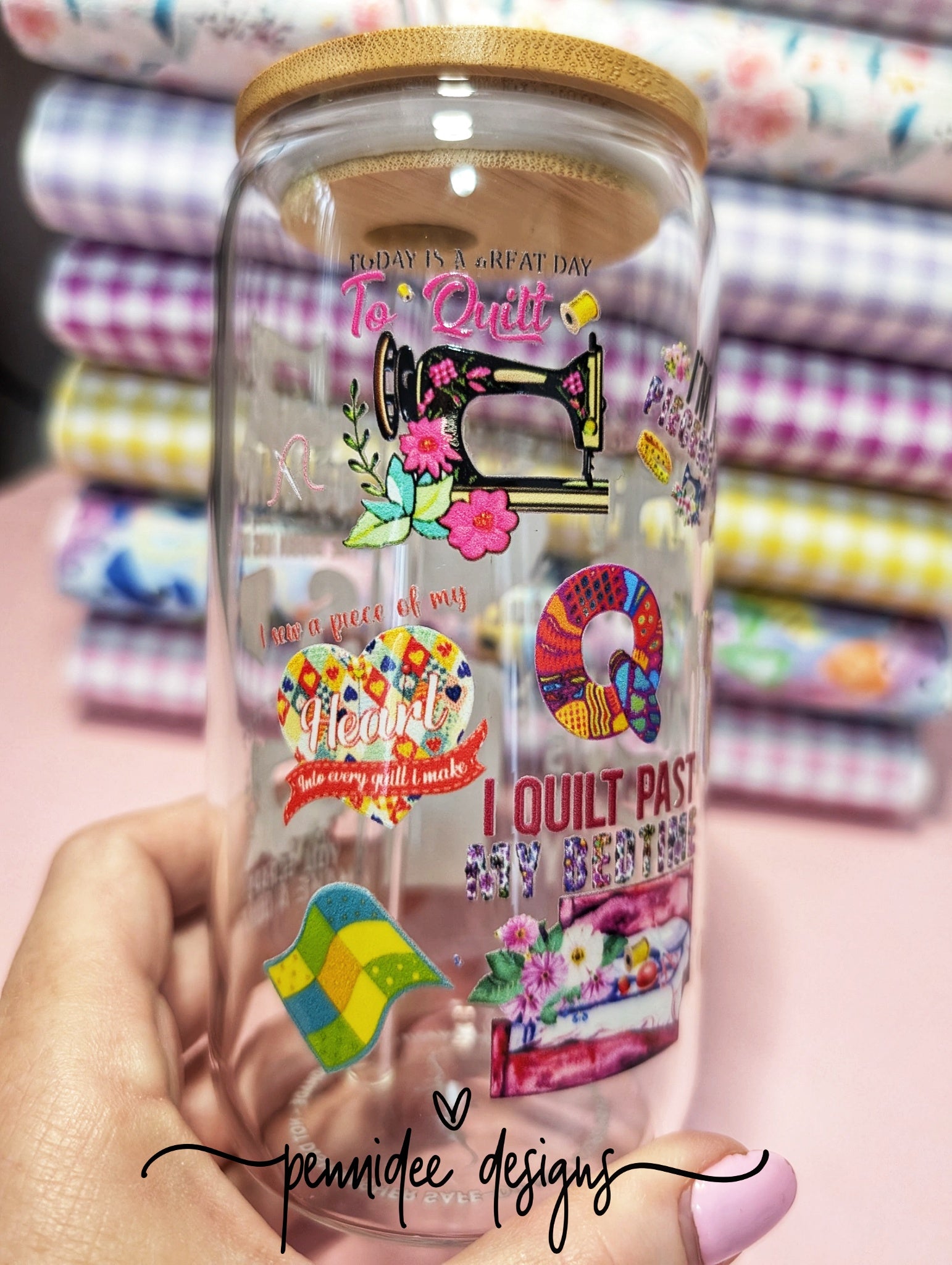 Experience the indulgence of sipping on a delicious and refreshing iced coffee, a flavourful iced tea, or a rejuvenating glass of cold water infused with fresh fruit slices in our Quilting Quotes ~ 475ml (16oz) Libbey Glass Can.
